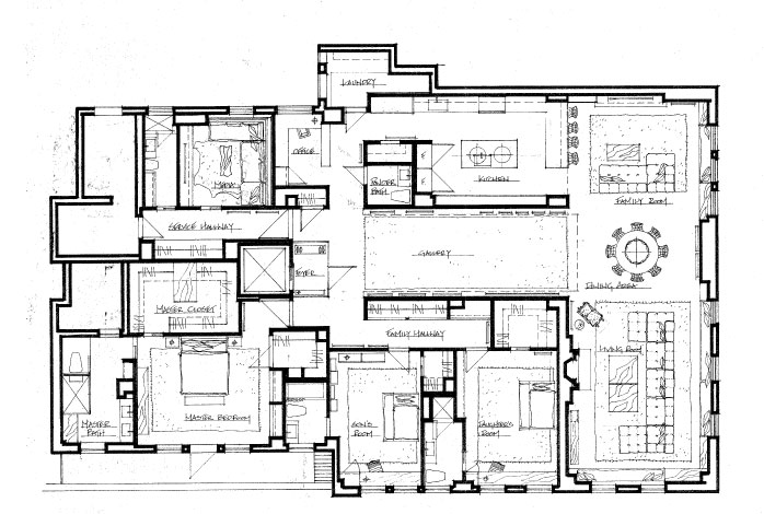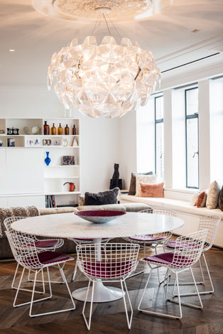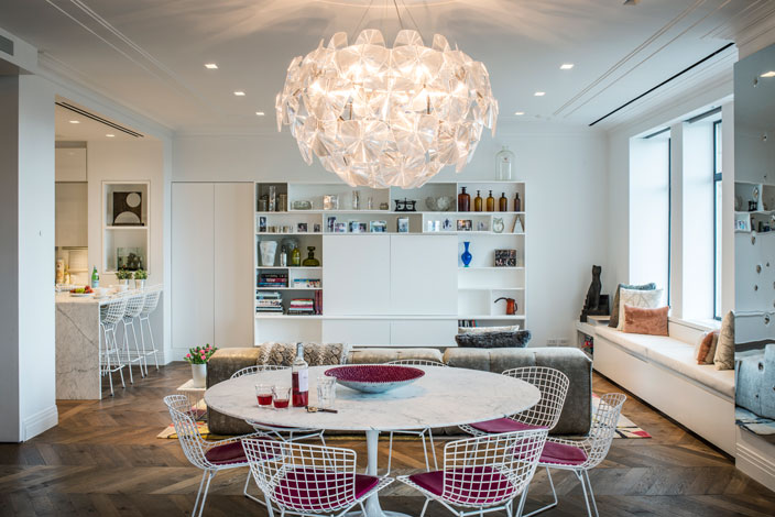 FO Design collaborated with their clients and the architectural team of Matthew Baird Design in this gut renovation of a home for a young family. The clients wanted to bring their downtown loft sensibility to this classic residence in a historic Upper West Side building. Beyond selections of furnishings, lighting, rugs, and accessories, FO Design was also involved in the planning of bathrooms, materials, and finishes.