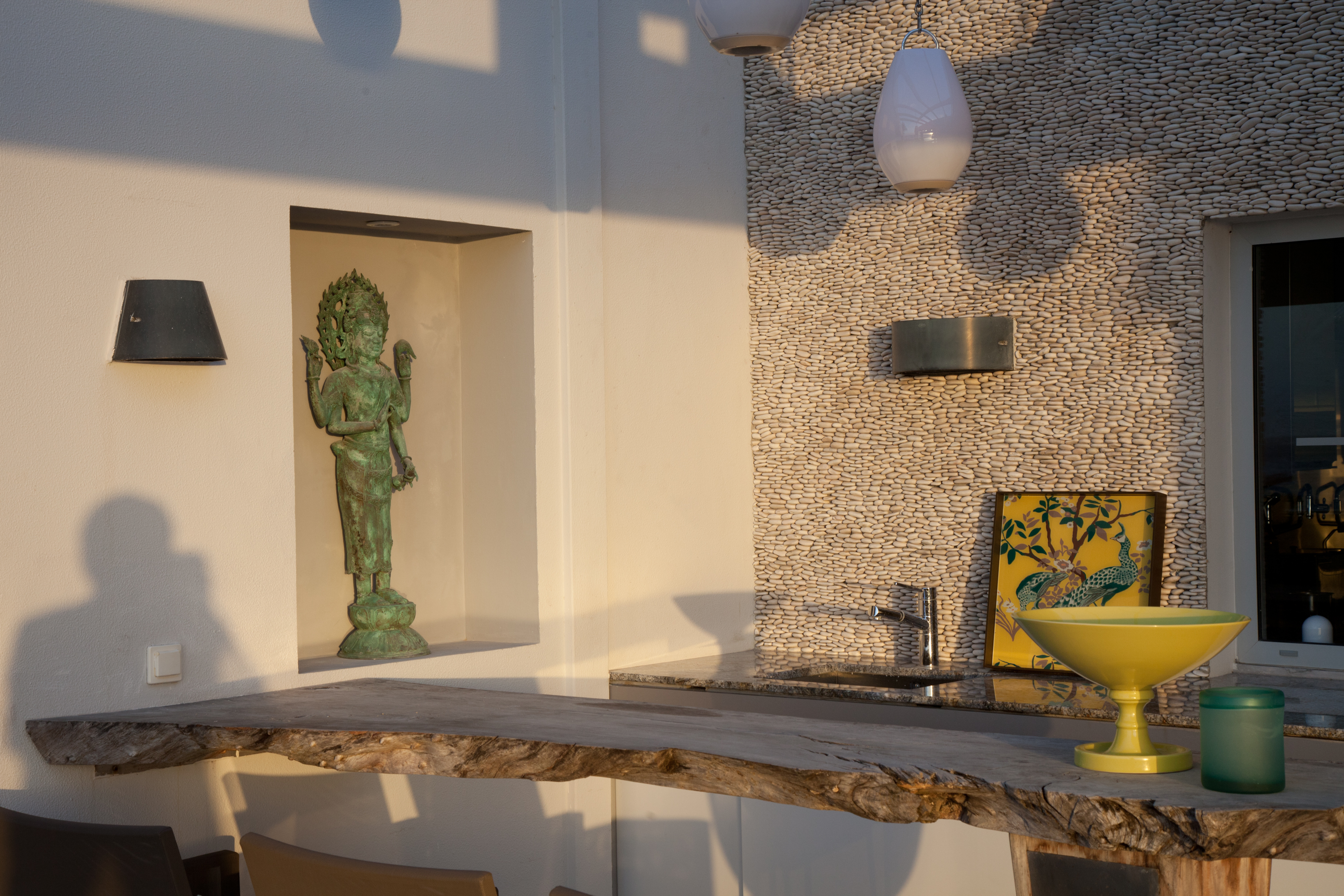 In January of 2012 Ms Oefelein was invited to go to St Martin to visit a client’s vacation villa in order to plan an extensive makeover. 8 month later, 60 container feet of furniture and accessories arrived on the french side of the island and with the help of Chaz Williams who created all soft goods on site, the Villa was transformed. Photographer: Peter Dressel