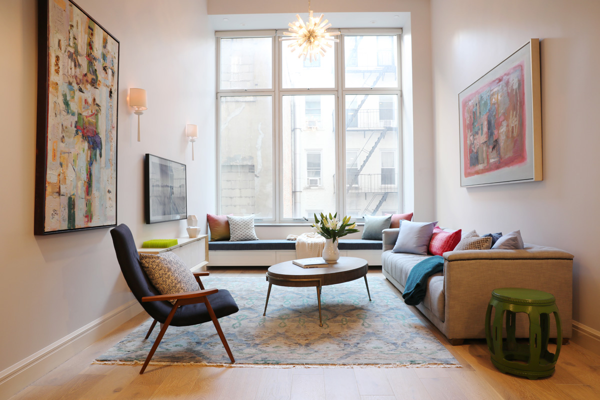 This duplex family loft is located in Manhattans Flatiron district. We were asked to completely transform an existing and dark 2 BR layout into a bright and modern 3 BR home for the growing family. The result is a brand-new loft with a family room overlooking the more formal living room. A new kitchen and bathrooms as well as a small outdoor space were also designed.