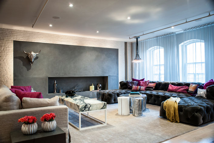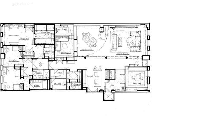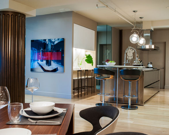 FO DESIGN designed this 4000 square foot loft space for a young family in 2006. After a severe building flood damaged most of the apartment in 2009, the clients approached us again and this time around we were able to improve the design even further. The master bed room and children areas were re-configured, 3 bath rooms completely re-designed and new oak floors installed throughout. Contemporary furnishings and touches of bright colors reflect the clients current taste and lifestyle.